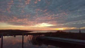 Nun ist es schön, wieder im winterlich-ruhigen Gut anzukommen: Die Schwäne schaukeln auf dem Bodden, ein kühler Wind weht, und es gab einen spektakulären Sonnenuntergang.Wir sind zufrieden mit dem Erreichten im ersten Jahr, mit dem Leben und Wirken hier, mit dem Miteinander im Dorf, mit unserem Miteinander und den Impulsen, die wir setzen konnten.